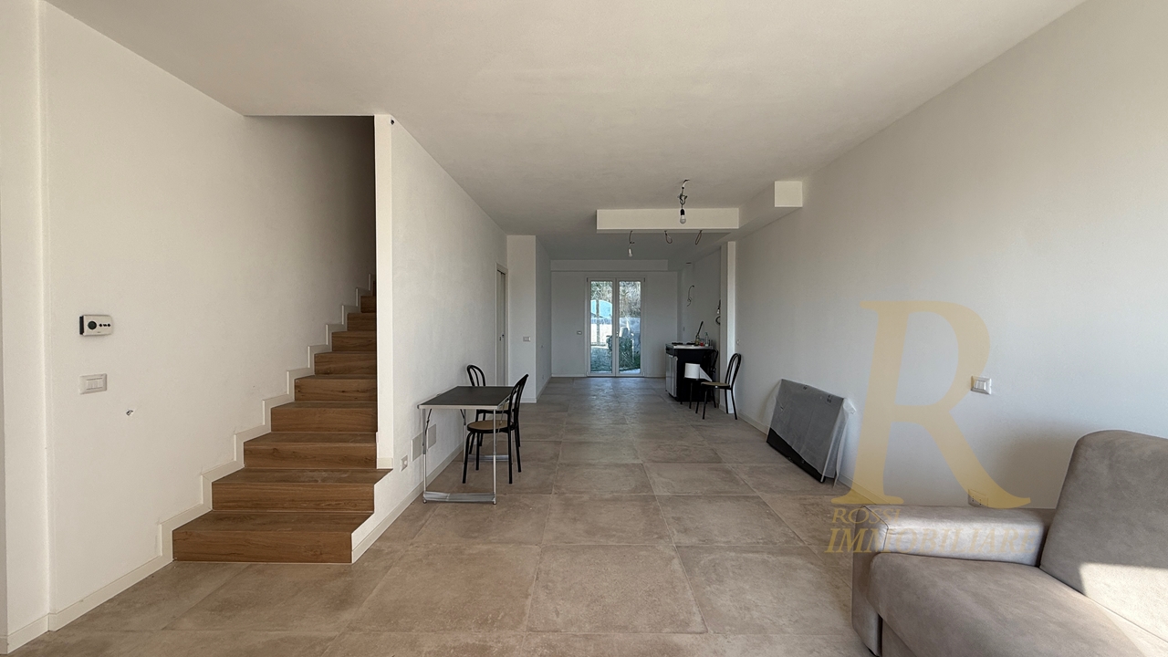 L’abitazione si sviluppa su più livelli e accoglie all’ingresso un ampio e luminoso soggiorno open space, impreziosito da un affaccio diretto su un balcone abitabile e su un grazioso giardino esclusivo, perfetto per momenti di relax all’aperto. Salendo al primo piano troviamo la zona notte composta da una camera matrimoniale, due camere singole, un bagno finestrato e due terrazzi che donano ulteriore respiro e luminosità agli ambienti.