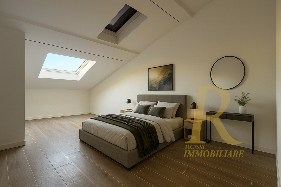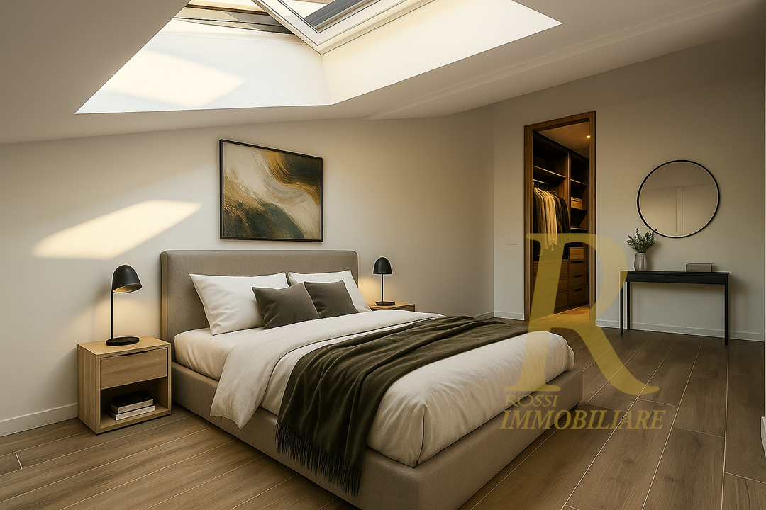 All’ultimo piano si apre invece un esclusivo livello dedicato alla suite padronale: un’ampia stanza caratterizzata da doppia finestra automatizzata a tetto, una comoda nicchia ideale per realizzare una cabina armadio, un elegante bagno privato con ampia doccia e una soffitta pluriuso adibita a ripostiglio. Uno spazio indipendente e riservato, pensato per garantire la massima privacy e un’atmosfera intima e raffinata.